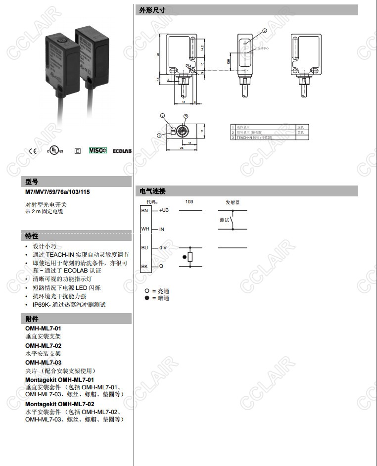 M7/MV7/59/76a/102/115/126b,M7/MV7/59/76a/103/115,對(duì)射型傳感器