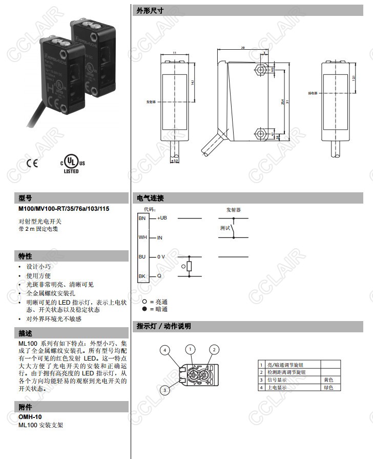 M100/MV100-IR/76b/102/115,M100/MV100-RT/35/76a/103/115,對(duì)射型傳感器