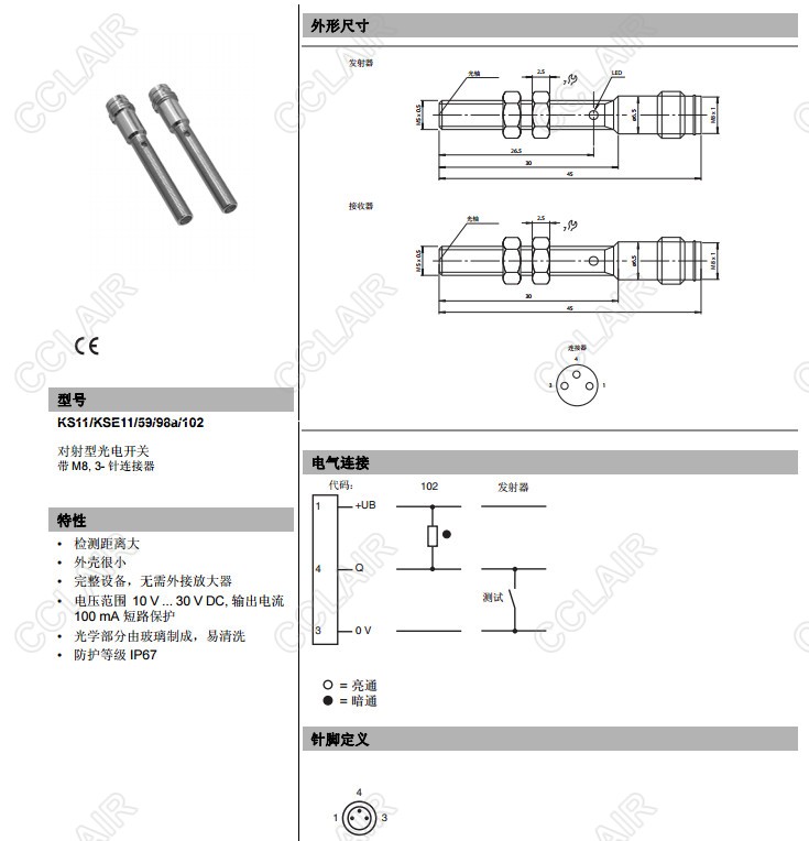 KS11/KSE11/59/98a/102,KS11/KSE11/59/98a/103,對射型傳感器