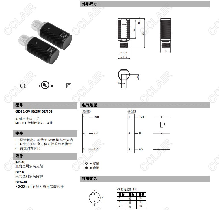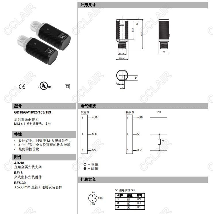GD18/GV18/25/102/159,GD18/GV18/25/103/159,對射型傳感器