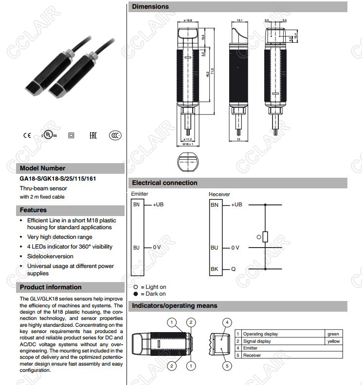 GA18-S/GK18-S/25/115/161,對(duì)射型傳感器