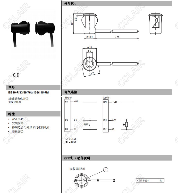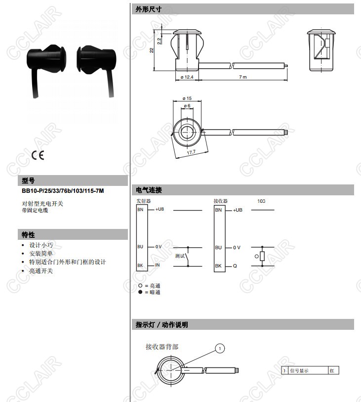 BB10-P/25/33/76b/103/115-7m,BB10-P/33/59/76b/103/115-7m,對射型傳感器