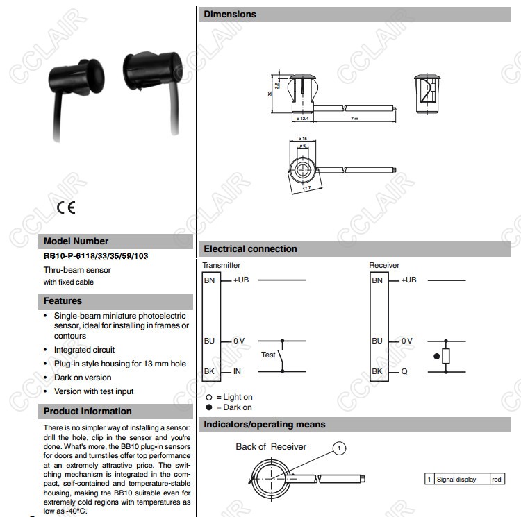 BB10-P-6118/33/35/59/103,BB10-P-F1/25/33/35/103/115-7m,對射型傳感器