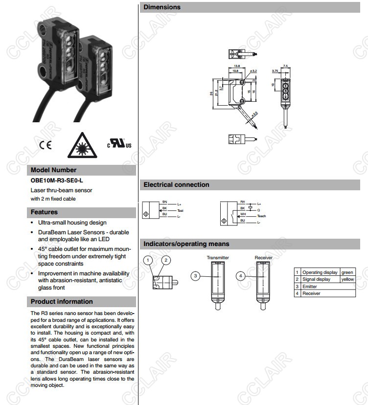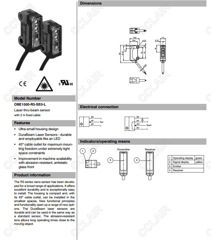 OBE1000-R3-SE0-L,OBE10M-R3-SE0-L,對(duì)射型傳感器
