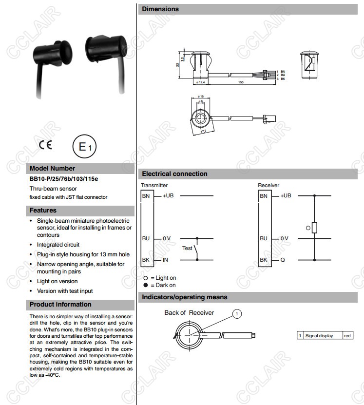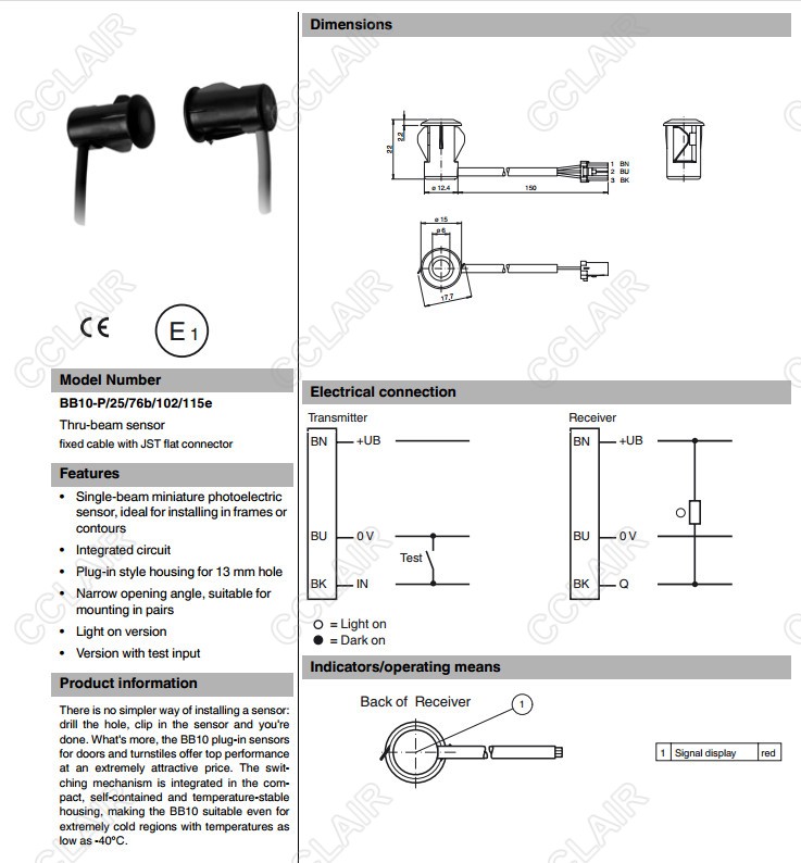 BB10-P/25/76b/102/115e,BB10-P/25/76b/103/115e,對射型傳感器