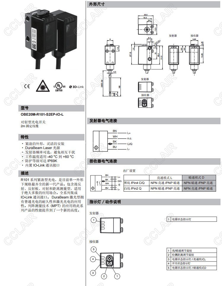 OBE20M-R101-S2EP-IO-L,對射型傳感器