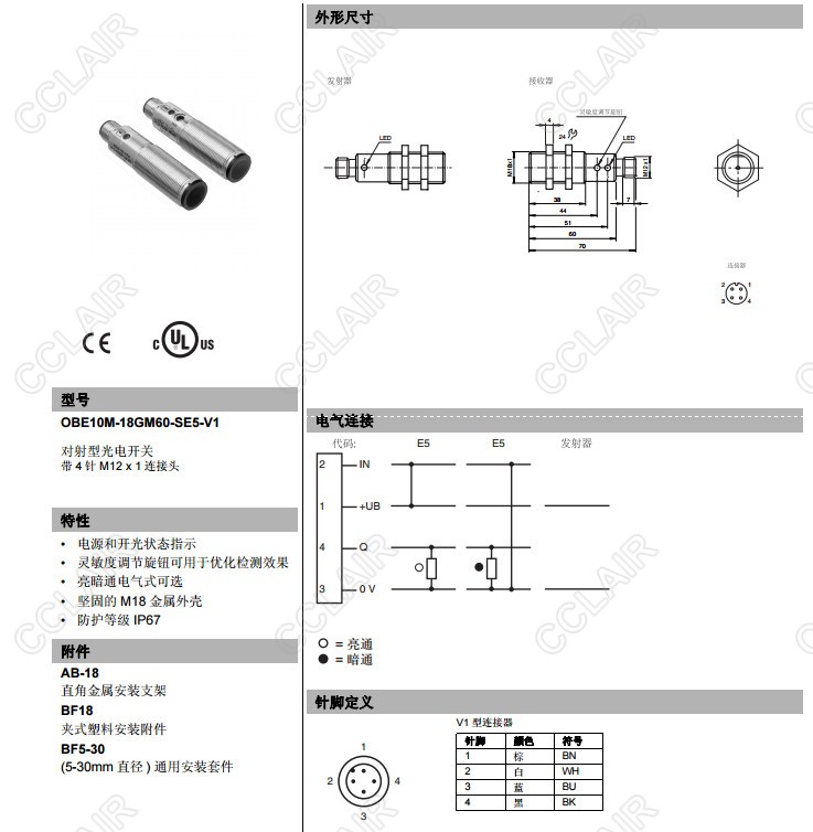 OBE10M-18GM60-SE5-V1,對射型傳感器