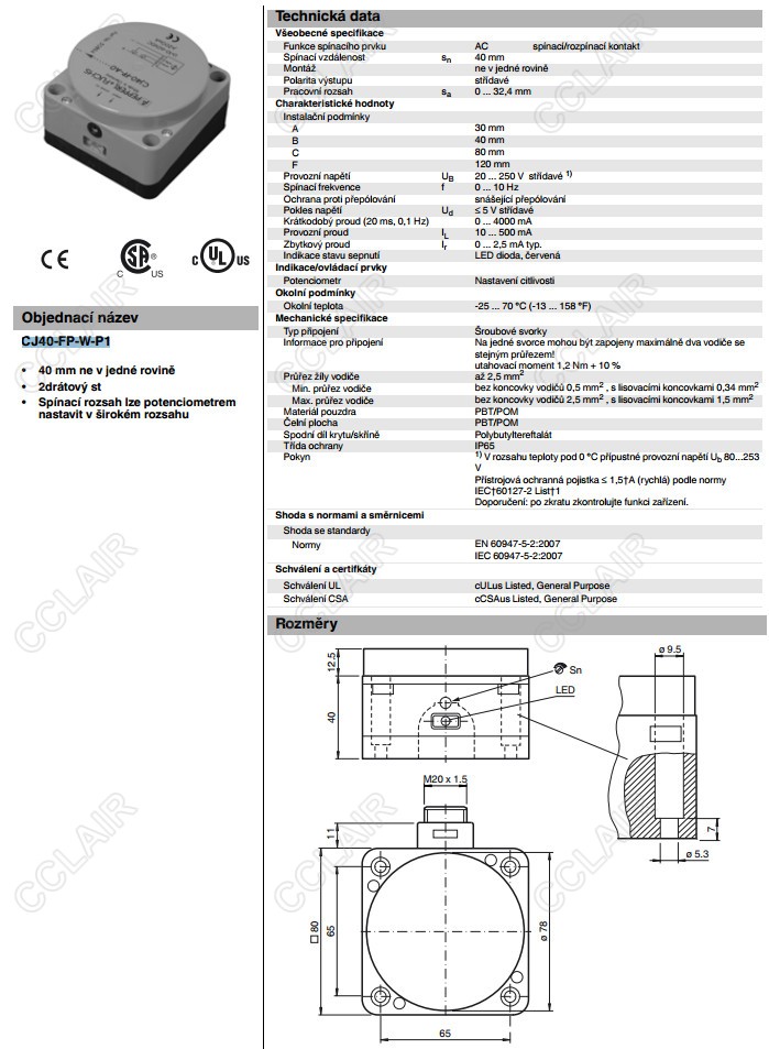 CJ40-FP-W-P1,電容式接近開關(guān)