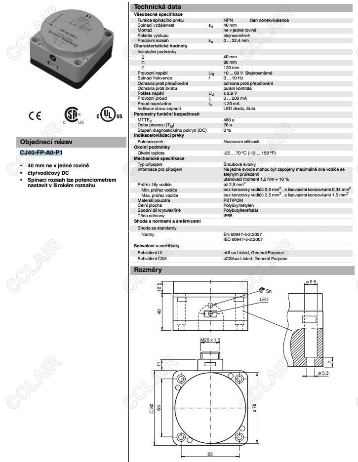 CJ40-FP-A0-P1,電容式接近開關