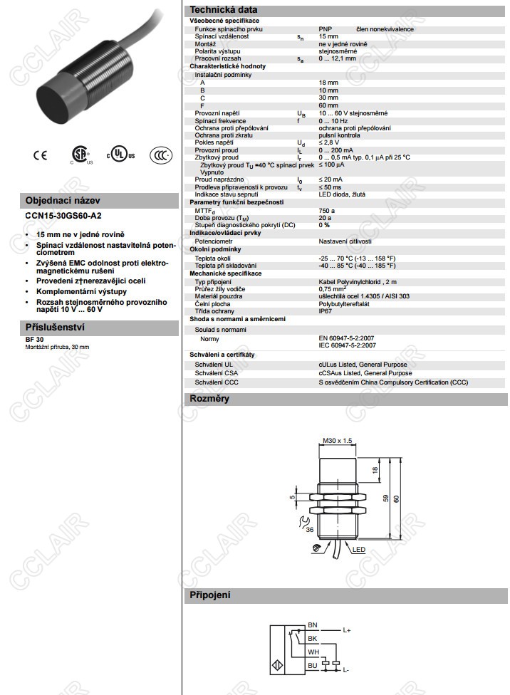 CCN15-30GS60-A2,電容式接近開關(guān)