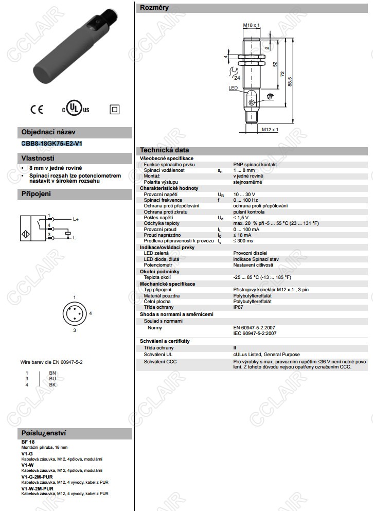 CBB8-18GK75-E2-V1,電容式接近開(kāi)關(guān)