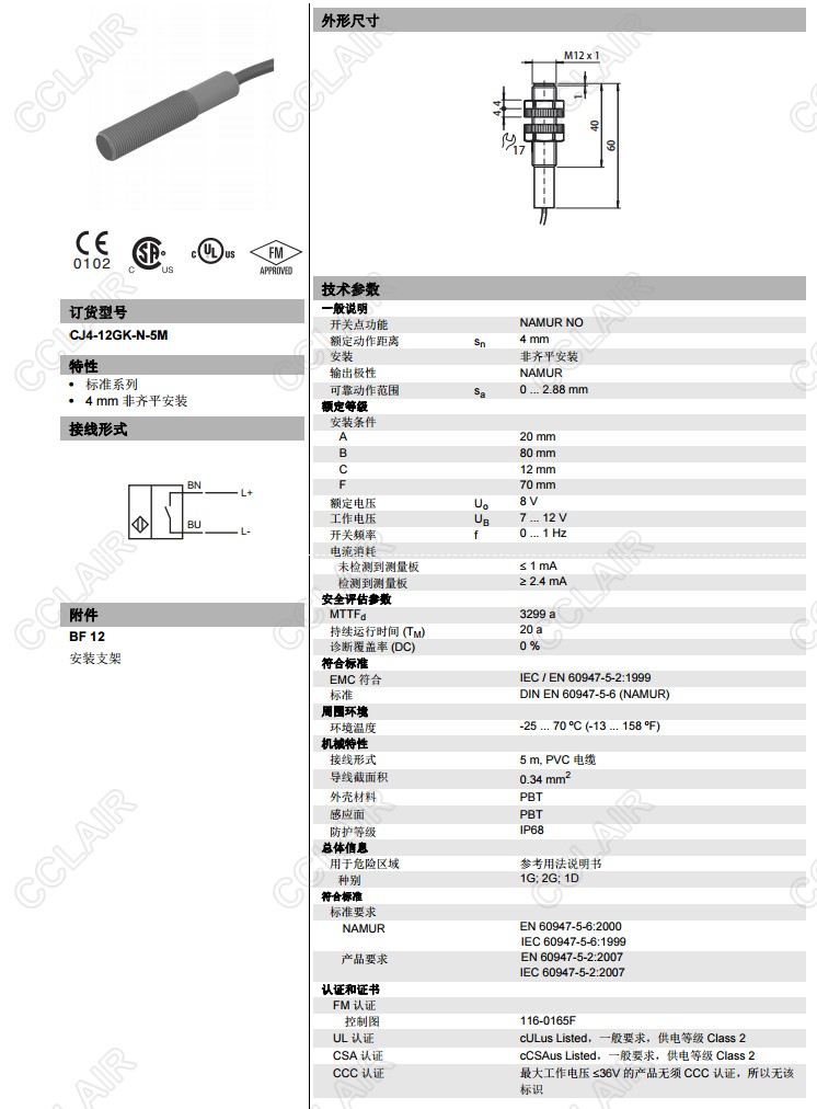 CJ4-12GK-N-5M,電容式接近開關(guān)