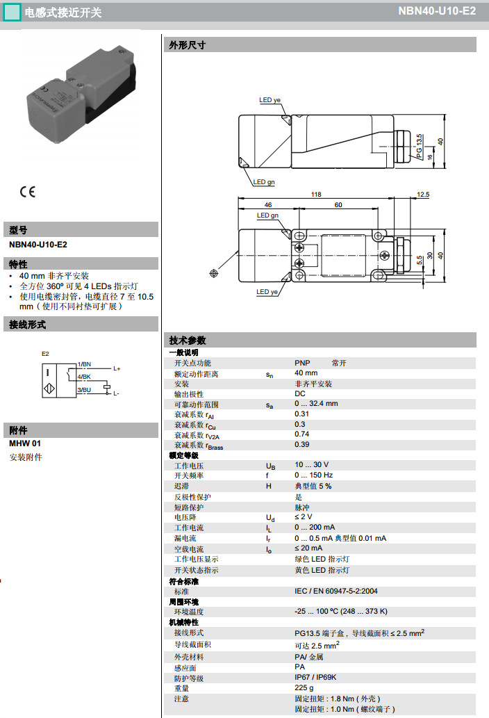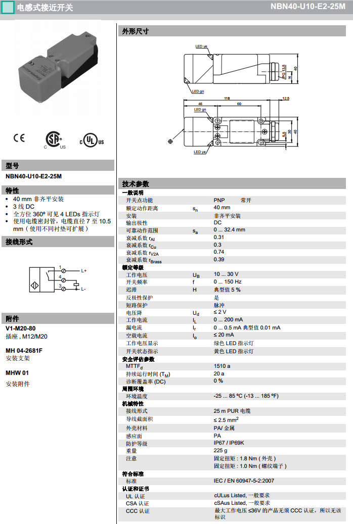NBN40-U10-E2,NBN40-U10-E2-25M感應(yīng)式傳感器