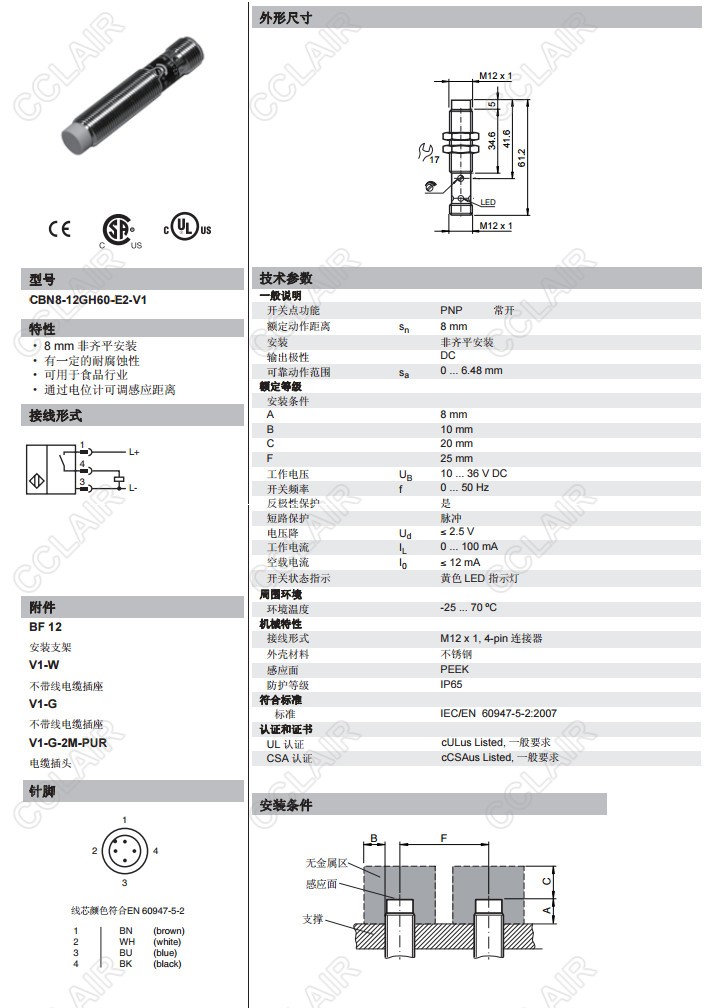 CBN8-12GH60-E2-V1,電容式接近開關(guān)