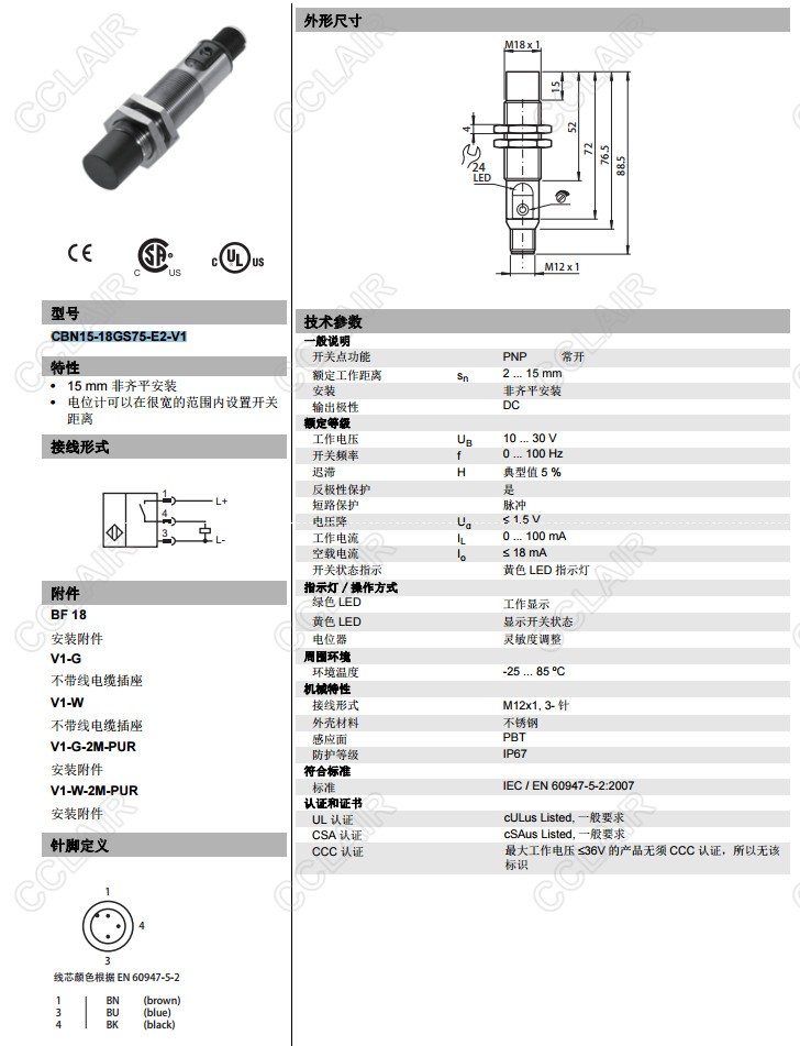CBN15-18GS75-E2-V1,電容式接近開關(guān)