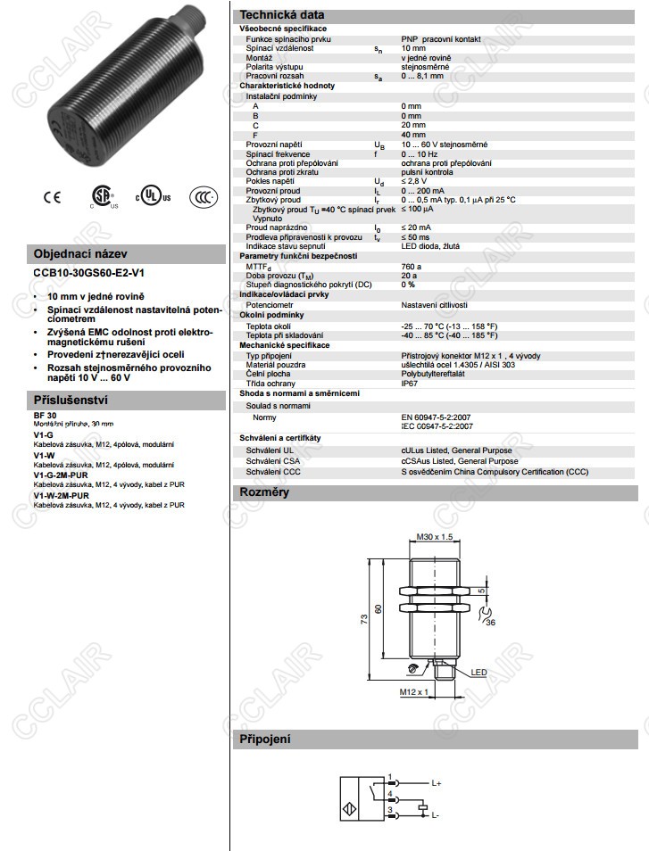 CCB10-30GS60-E2-V1,電容式接近開(kāi)關(guān)