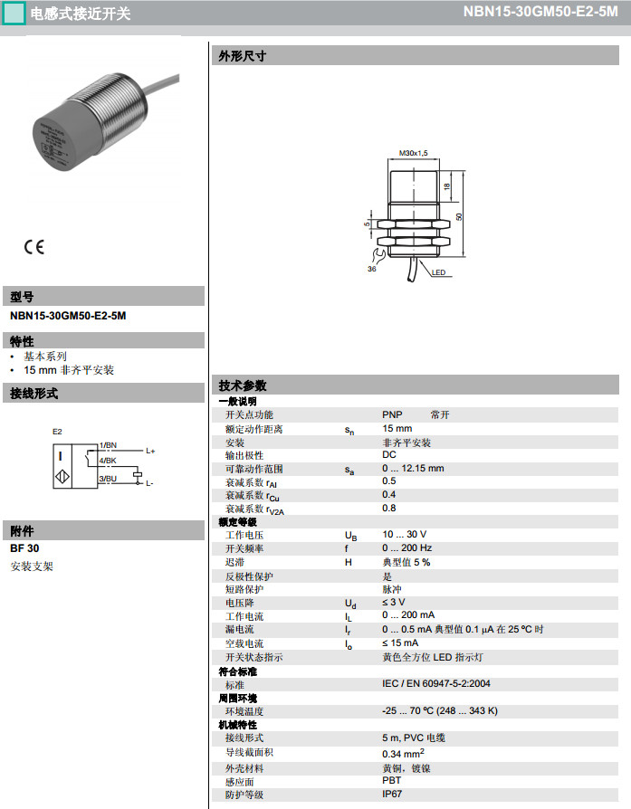 NBN15-30GM50-E2-5M感應式傳感器