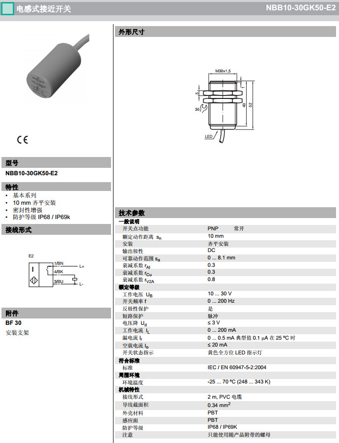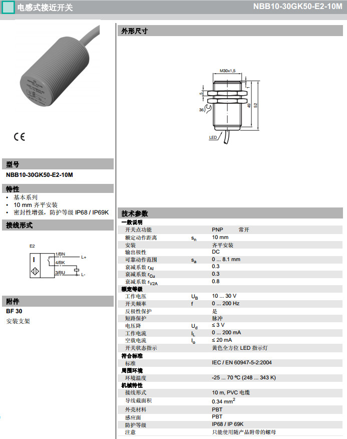 NBB10-30GK50-E0,NBB10-30GK50-E2,NBB10-30GK50-E2-10M感應式傳感器