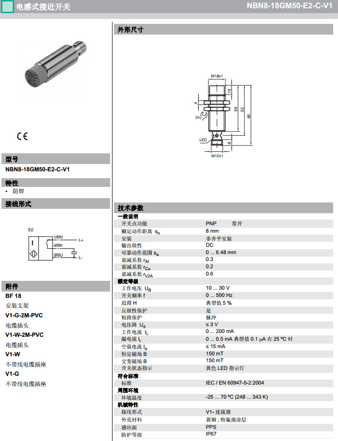 NBN8-18GM50-E2-C-V1電感式接近開關
