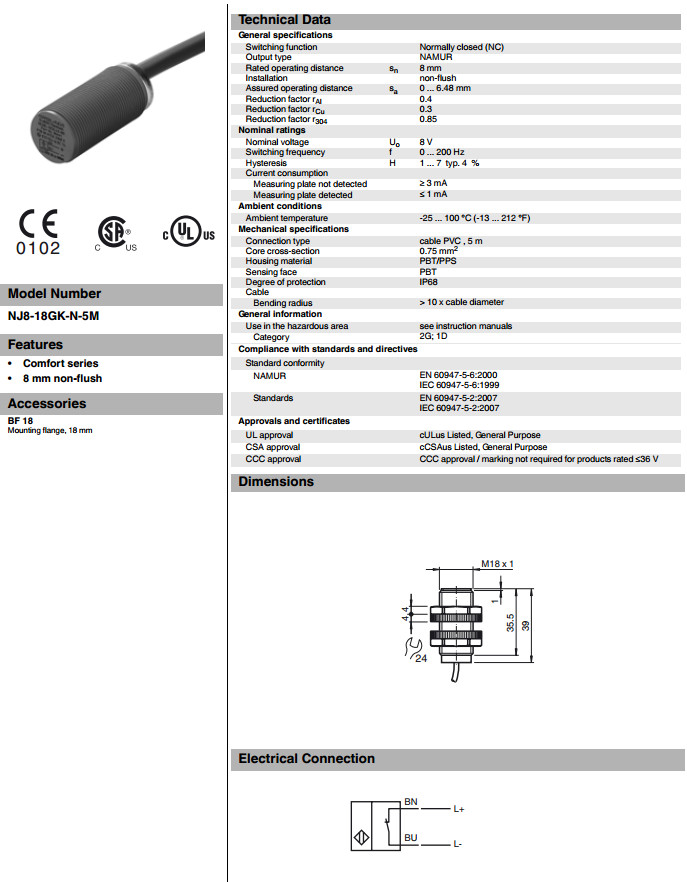 NJ8-18GK-N-5M電感式接近開關(guān)