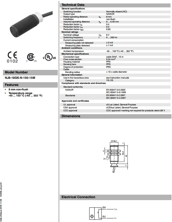 NJ8-18GK-N-150-15M電感式接近開關(guān)