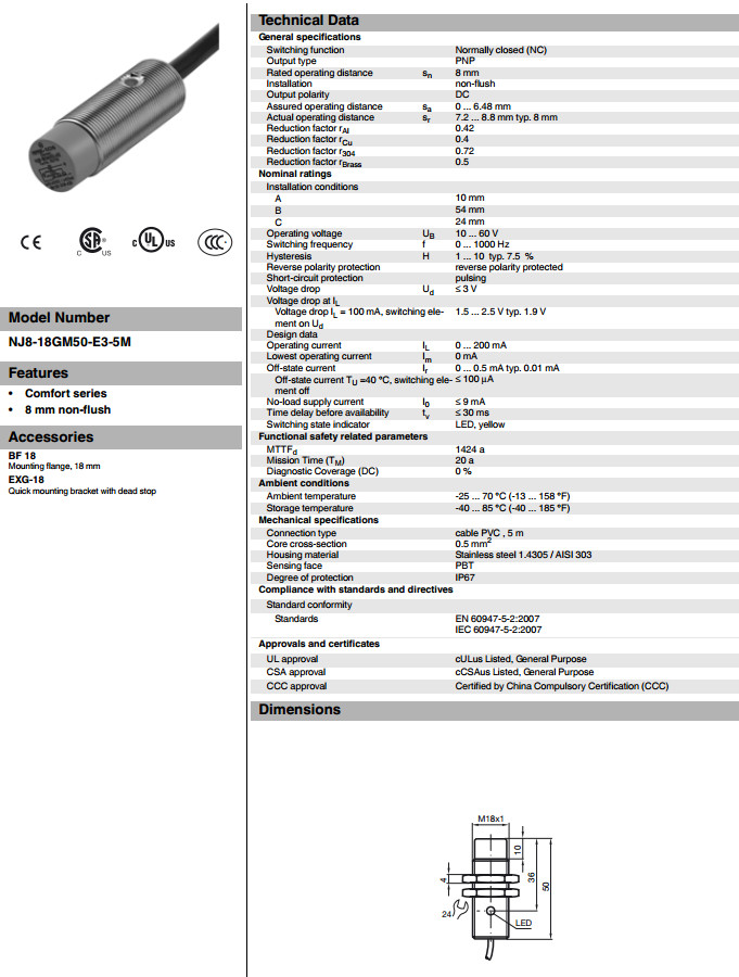 NJ8-18GM50-E3-5M電感式接近開關(guān)