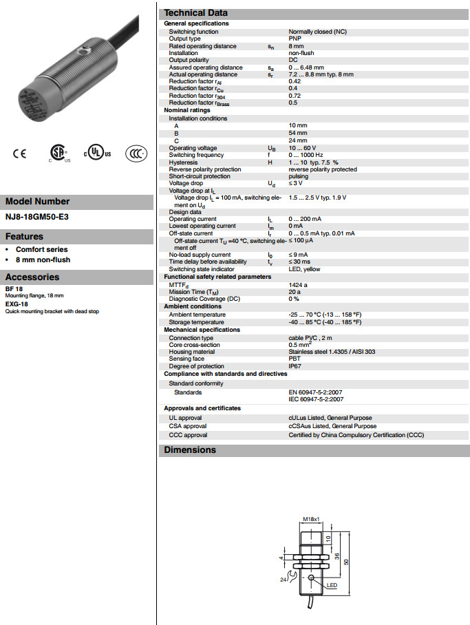 NJ8-18GM50-E3電感式接近開(kāi)關(guān)
