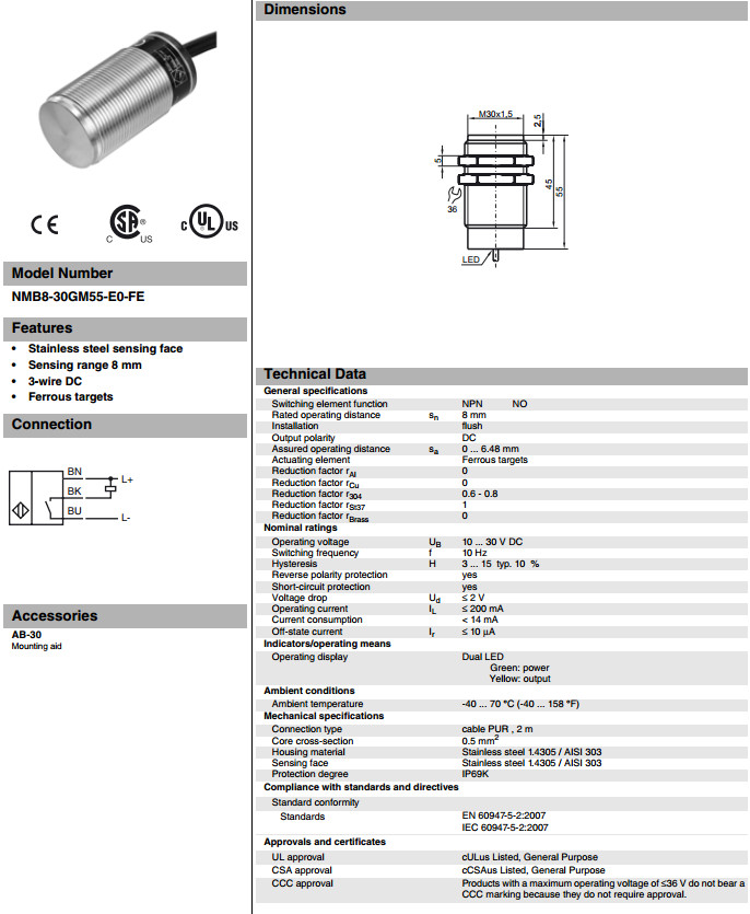 NMB8-30GM55-E0-FE電感式接近開關(guān)