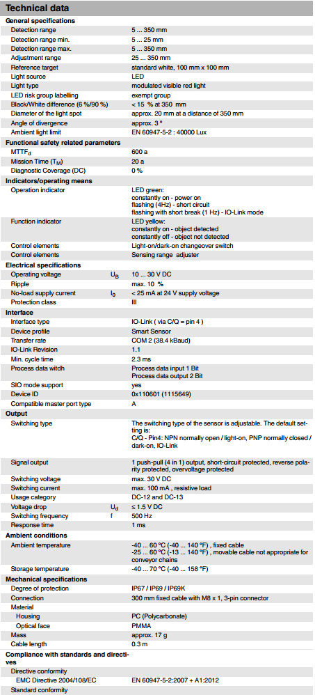 OBT350-R100-EP-IO-0,3M-V3漫反射型傳感器