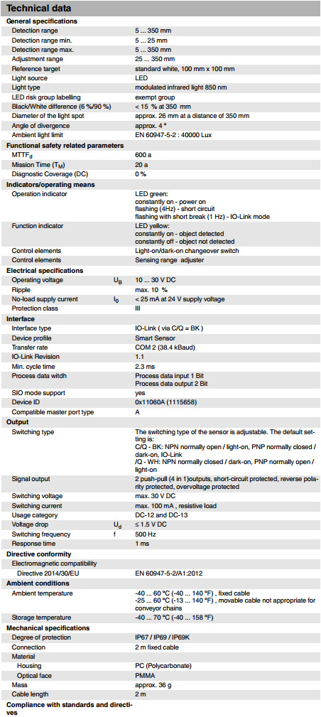 OBT350-R100-2EP-IO-IR漫反射型傳感器