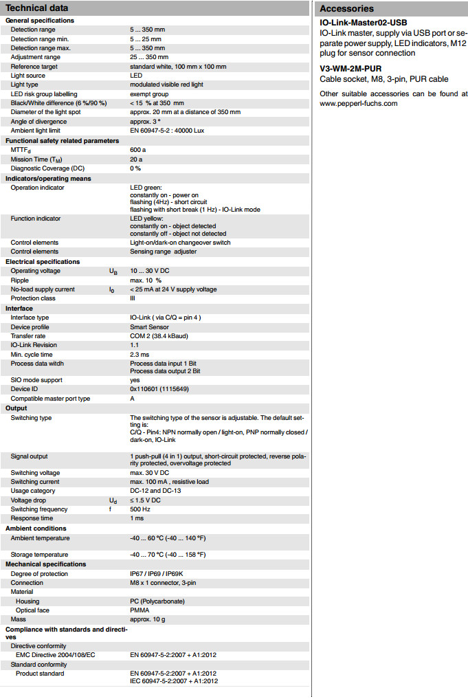 OBT350-R100-EP-IO-V3漫反射型傳感器