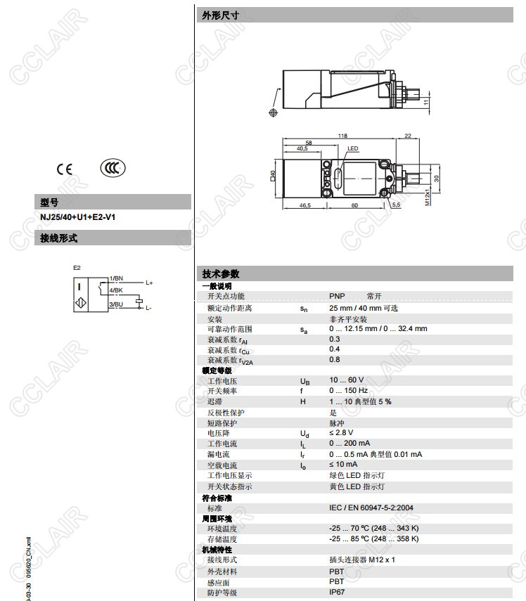 NJ25/40+U1+E2-V1,電感式接近開關(guān)