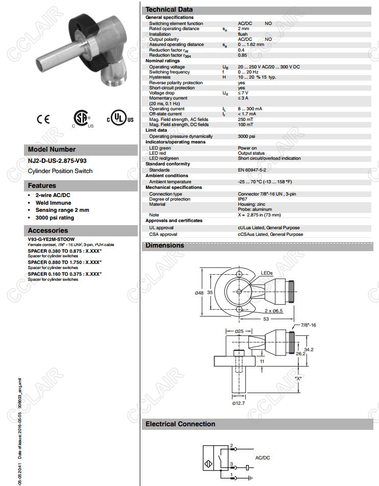 NJ2-D-US-2.062-V93,NJ2-D-US-2.875-V93,NJ2-D-US-4.562-V93,電感式接近開(kāi)關(guān)