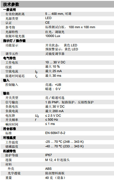MLV13-8-400/32/40b/73c漫反射型傳感器
