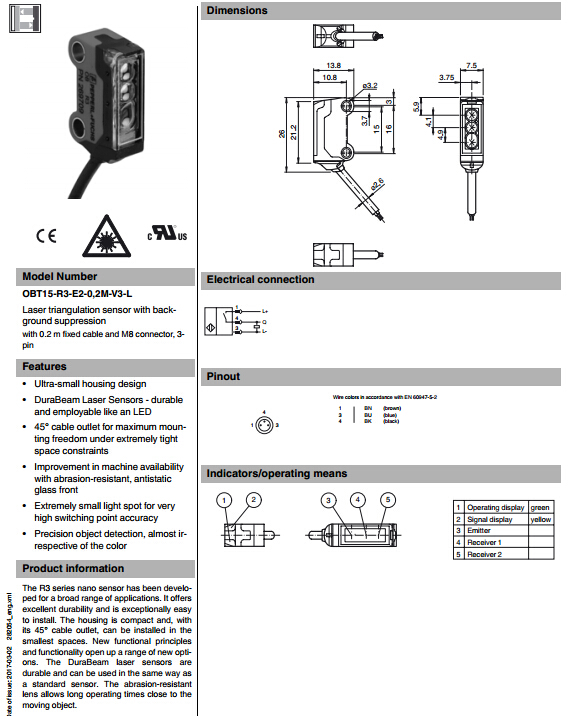 OBT15-R3-E2-0,2M-V3-L,漫反射型傳感器