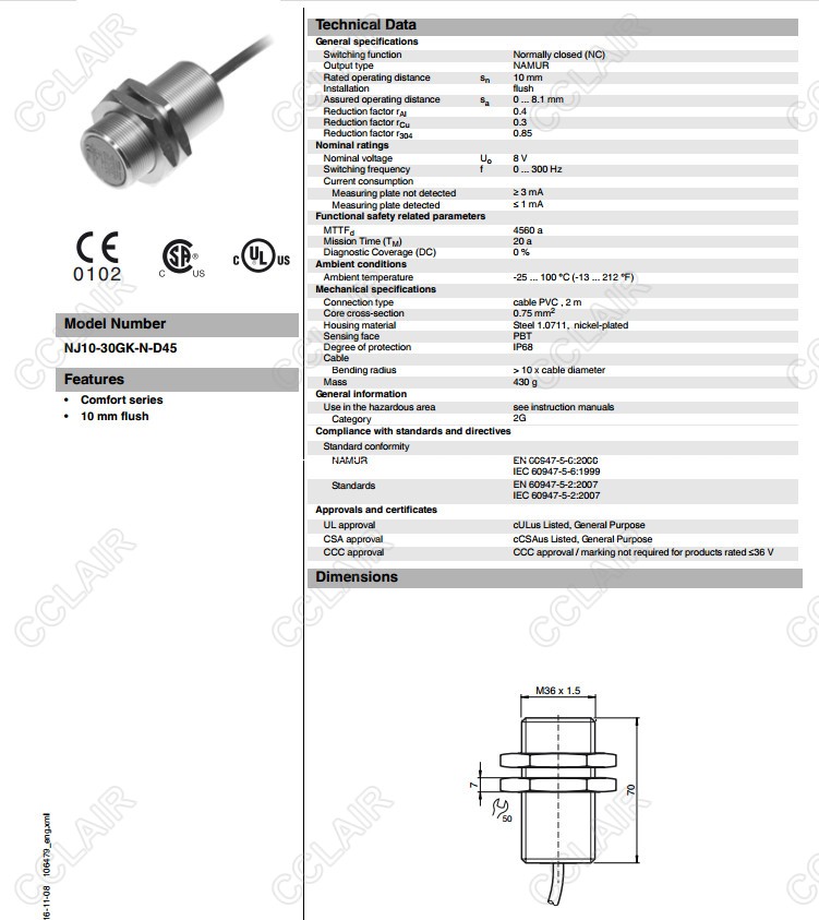 NJ10-30GK-N-D45,電感式接近開關(guān)