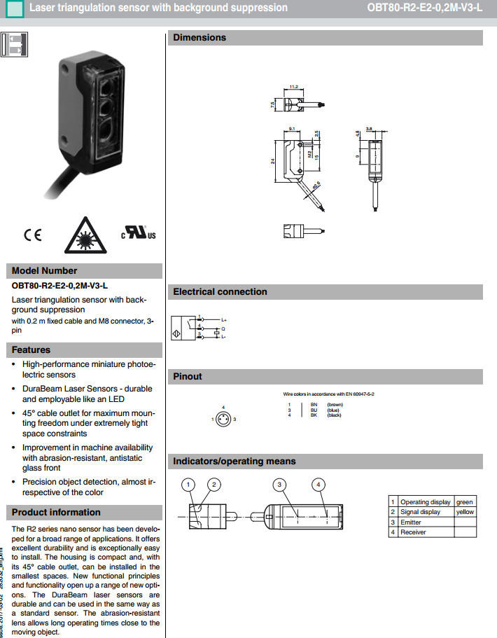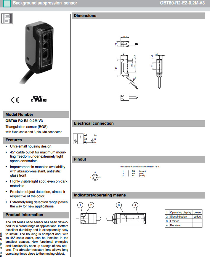 OBT80-R2-E2-0,2M-V3,OBT80-R2-E2-0,2M-V3-L漫反射型傳感器