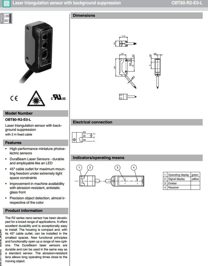 OBT80-R2-E0-L漫反射型傳感器