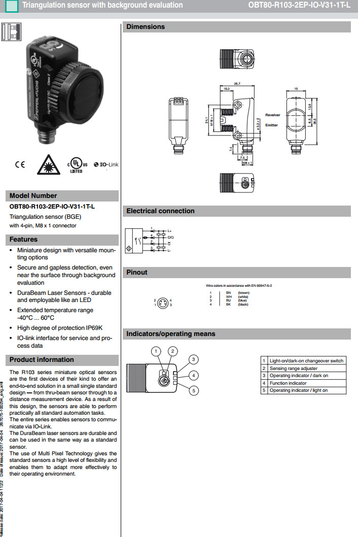 OBT80-R103-2EP-IO-V31-1T-L漫反射型傳感器