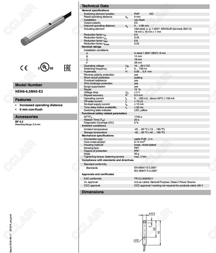 NEN6-6,5M45-E2,電感式接近開(kāi)關(guān)