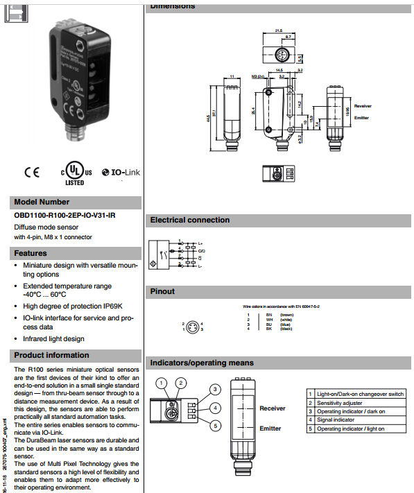 OBD1100-R100-2EP-IO-V31-IR,漫反射型傳感器
