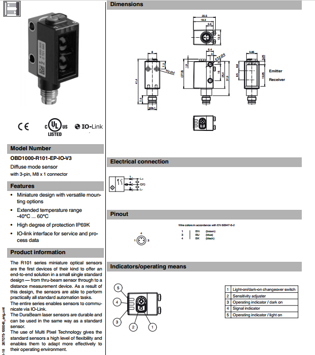OBD1000-R101-EP-IO-V3m,漫反射型傳感器