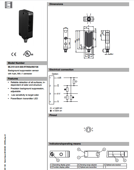 MLV41-8-H-500-RT/65b/92/136,漫反射型傳感器