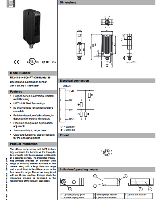 MLV41-8-H-500-RT-IO/65b/95/136,漫反射型傳感器