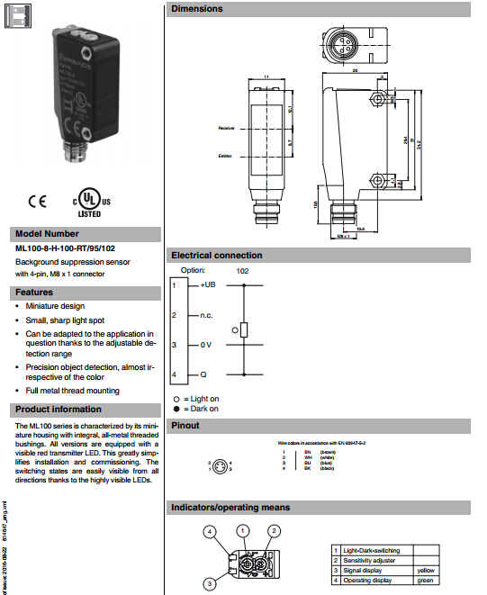 ML100-8-H-100-RT/95/102,漫反射型傳感器
