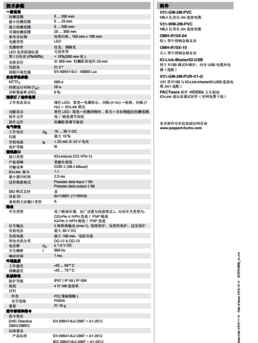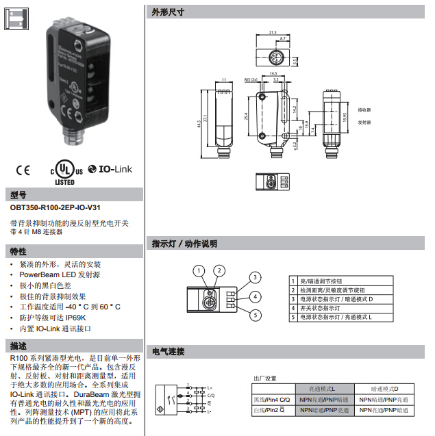 OBT350-R100-2EP-IO-V31,漫反射型傳感器