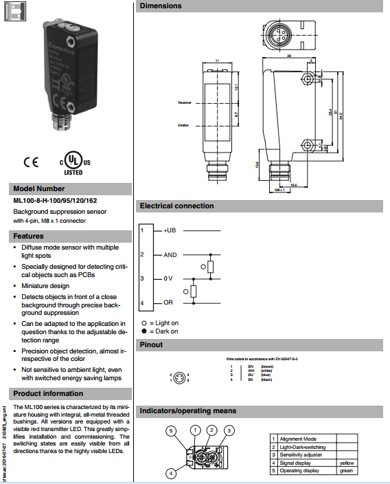 ML100-8-H-100/95/120/162,漫反射型傳感器
