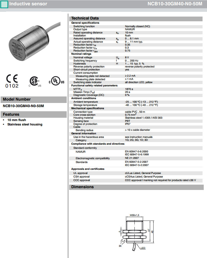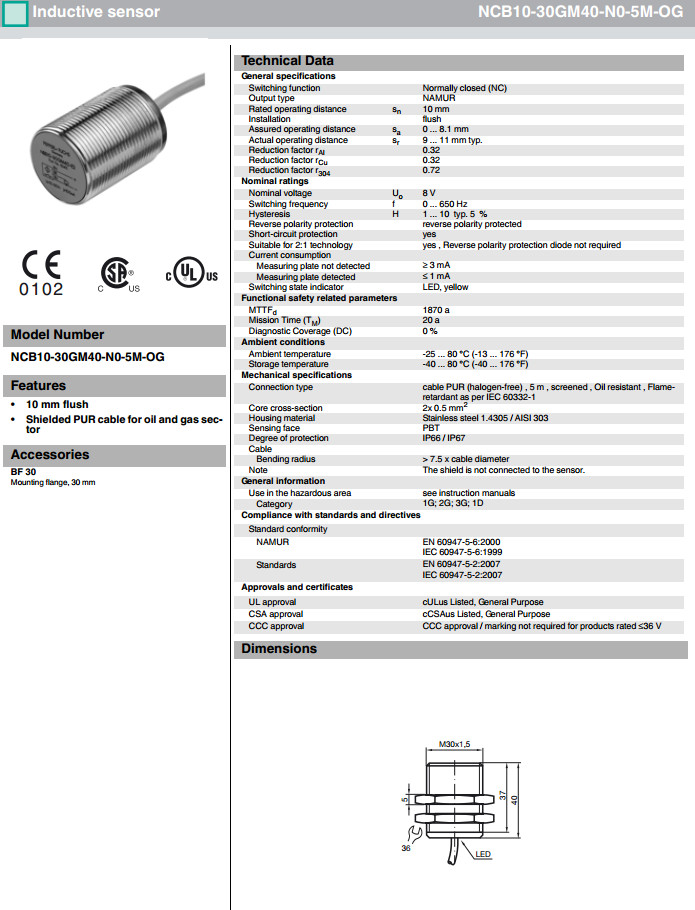 NCB10-30GM40-N0-50M,NCB10-30GM40-N0-5M-OG