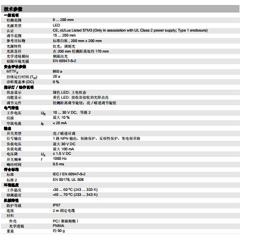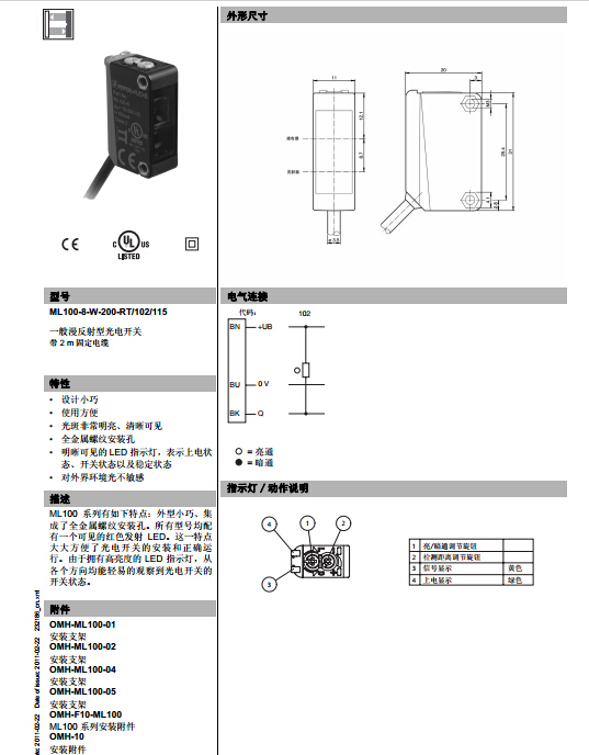 ML100-8-W-200-RT/102/115,漫反射型傳感器