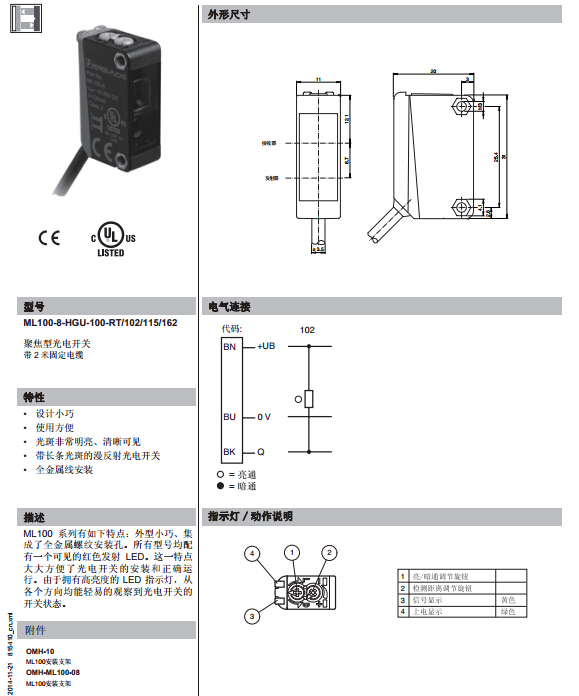 ML100-8-HGU-100-RT/102/115/162,漫反射型傳感器